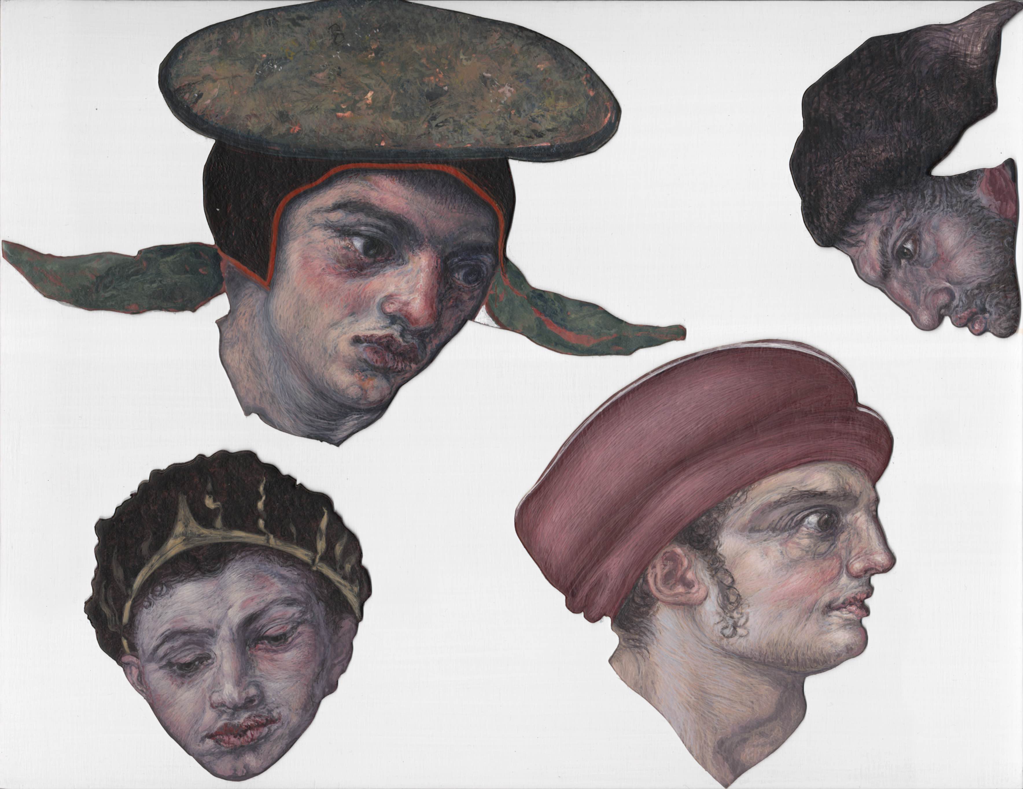 Aνασύνθεση πορτραίτων από την τοιχογραφία της ζωφόρου του τάφου του Φιλίππου του Β’ στις Αιγές Εμμανουήλ Μπιτσάκης Aνασύνθεση πορτραίτων από την τοιχογραφία της ζωφόρου του τάφου του Φιλίππου του Β’ στις Αιγές 2024-2025 ακρυλικό σε χαρτόνι και σε ξύλο 24 x 30 εκ.