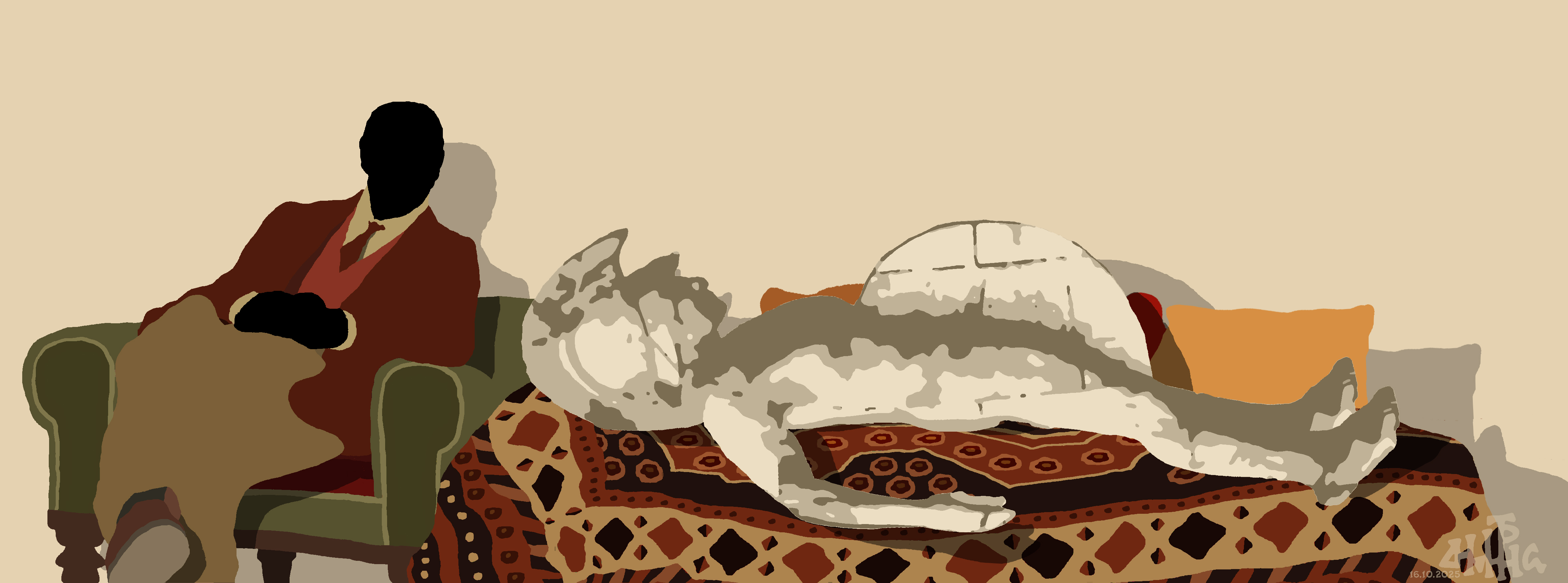 Χωρίς τίτλο (γελοιογραφία δημοσιευμένη στην εφημερίδα «Η Καθημερινή», 16.10.2025) Δημήτρης Χαντζόπουλος Χωρίς τίτλο (γελοιογραφία δημοσιευμένη στην εφημερίδα «Η Καθημερινή», 16.10.2025) 2025 giclee εκτύπωση σε μουσειακό χαρτί, 1/6 23 x 45 εκ.