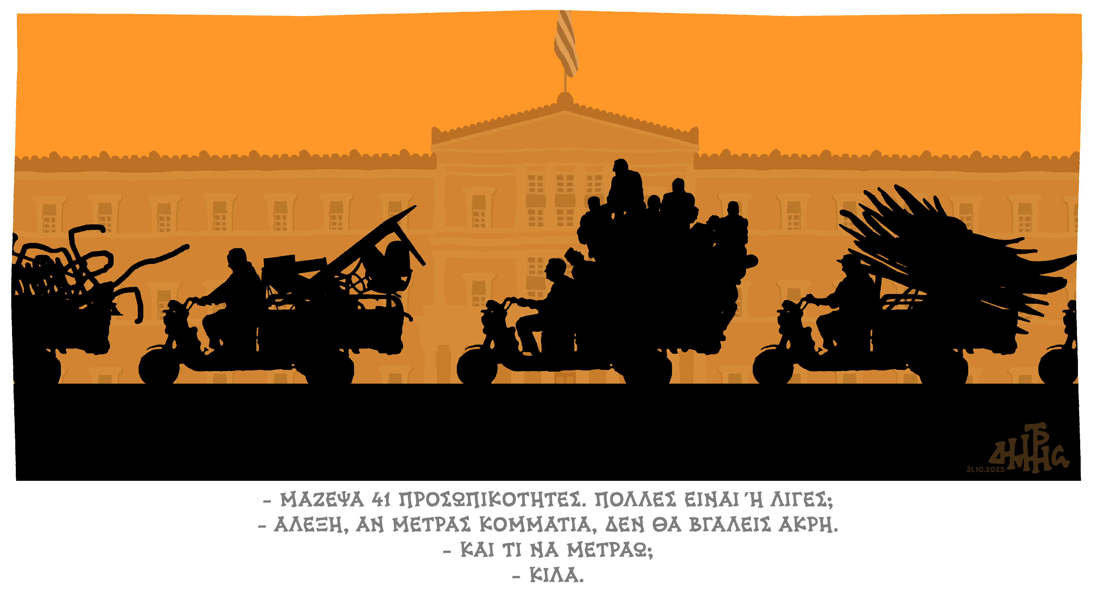 Χωρίς τίτλο (γελοιογραφία δημοσιευμένη στην εφημερίδα «Η Καθημερινή», 31.10.2025) Δημήτρης Χαντζόπουλος Χωρίς τίτλο (γελοιογραφία δημοσιευμένη στην εφημερίδα «Η Καθημερινή», 31.10.2025) 2025 ψηφιακή εκτύπωση, 1/6 28,5 x 44 εκ.